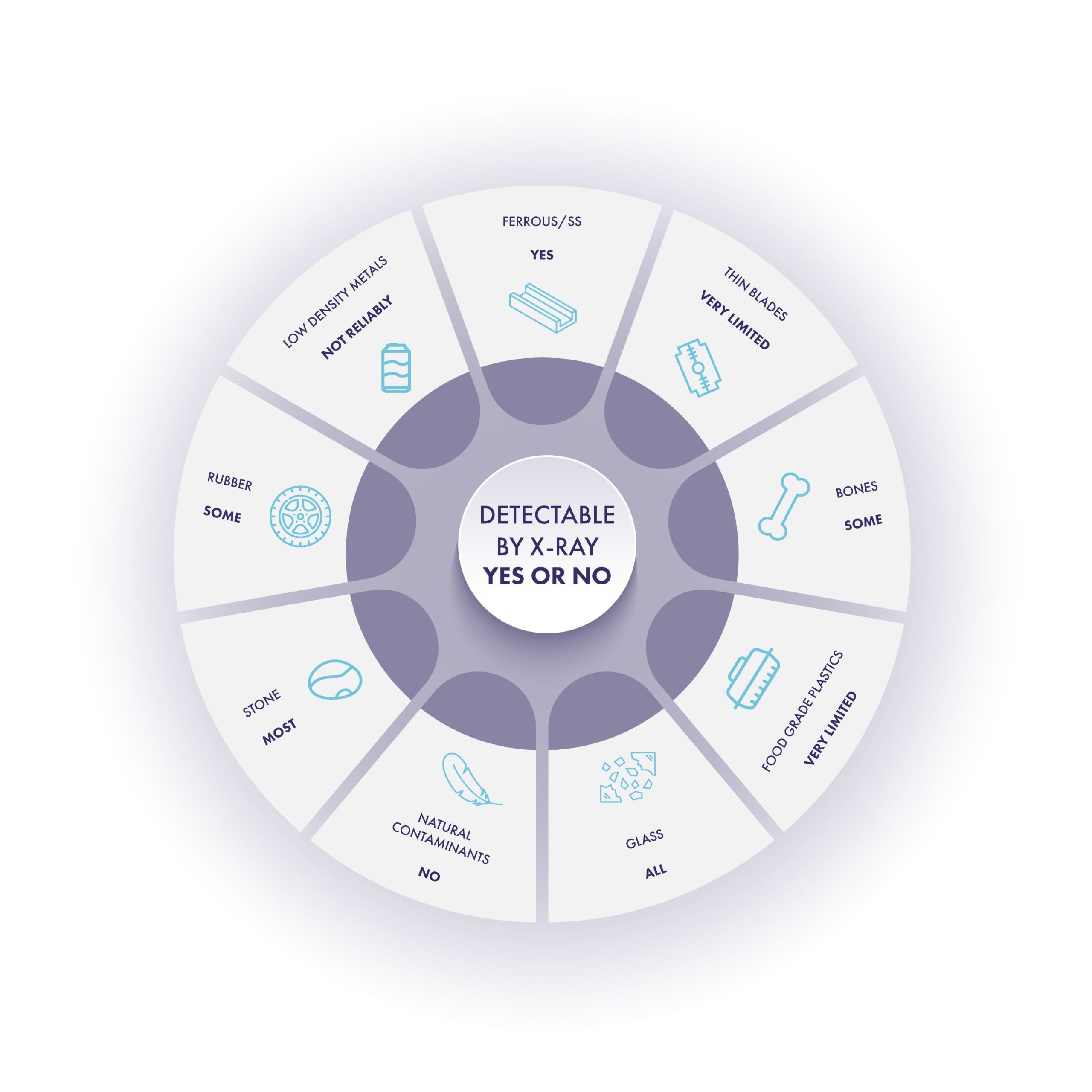 To help users determine if a contaminant is detectable by an X-ray, food safety specialist Fortress Technology developed the infographic published below.